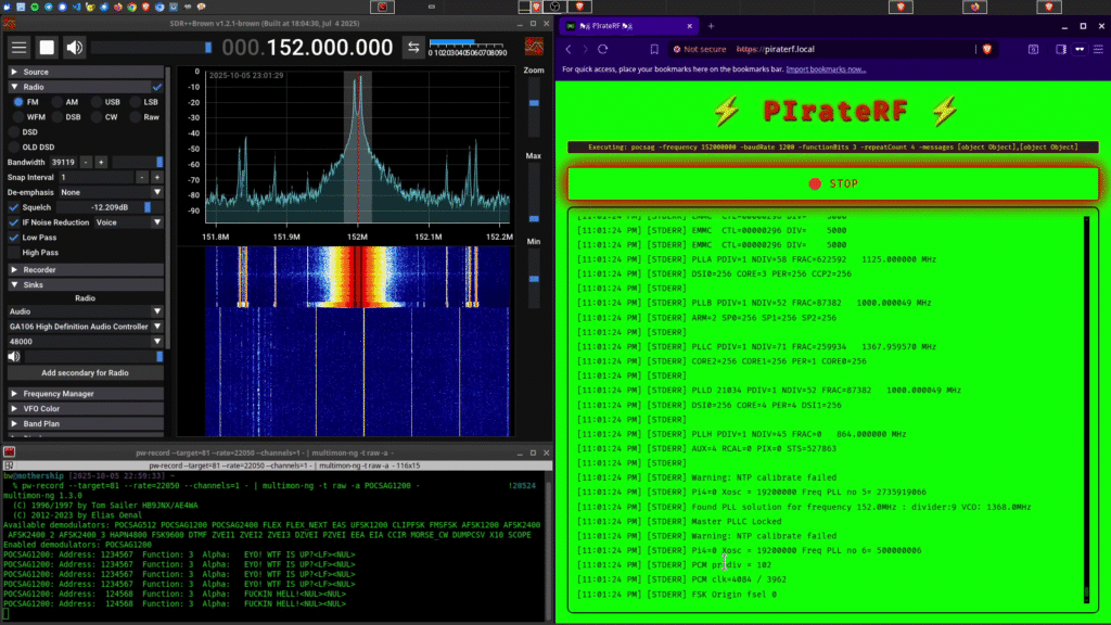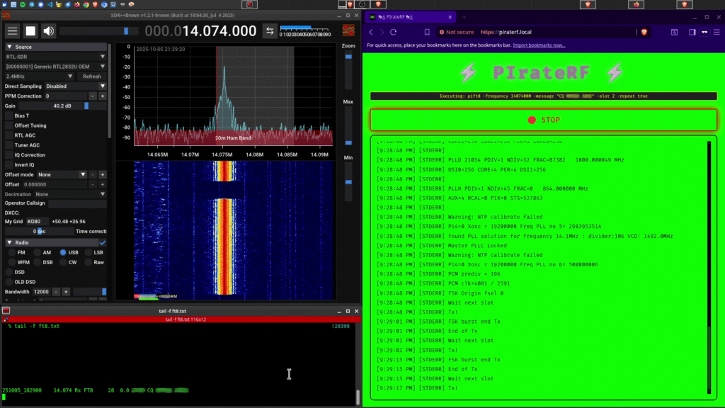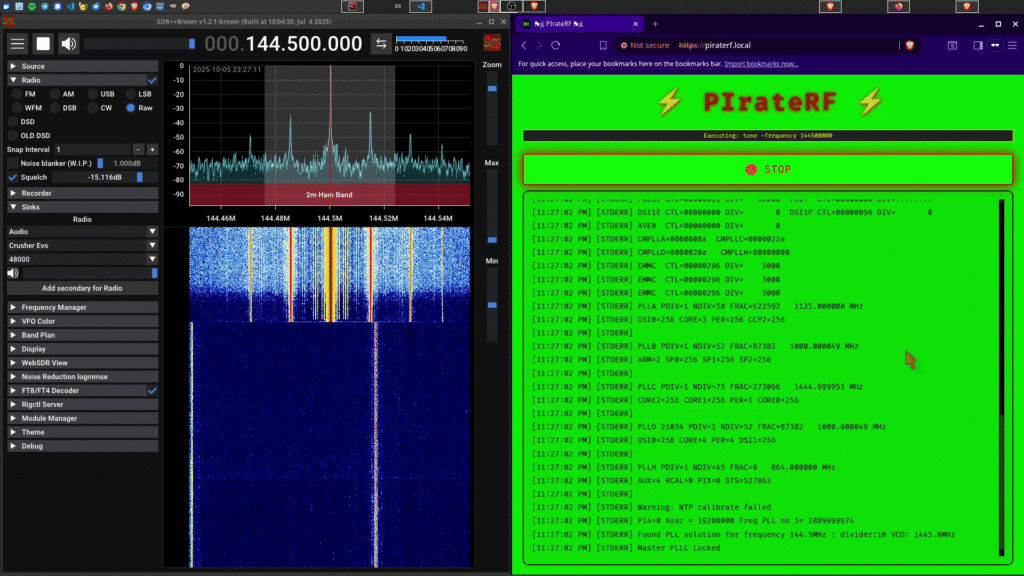 PIrateRF is designed for amateur radio experimentation and education – including safe indoor testing without external antennas. Built for engineers who understand that good RF practices matter more than arbitrary administrative boundaries. Users are responsible for compliance with all local RF regulations and licensing requirements.