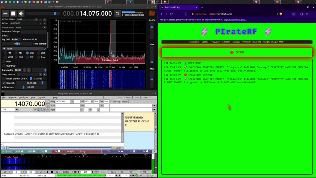 I got tired of this shit while experimenting with rpitx, F5OEO’s brilliant library that turns the Pi’s GPIO into an RF transmitter. The library itself is fantastic – it can generate everything from FM radio to digital modes using nothing but the Pi’s clock. But using it meant remembering dozens of command-line arguments, managing file conversions manually, and SSHing into the Pi for every fucking transmission.